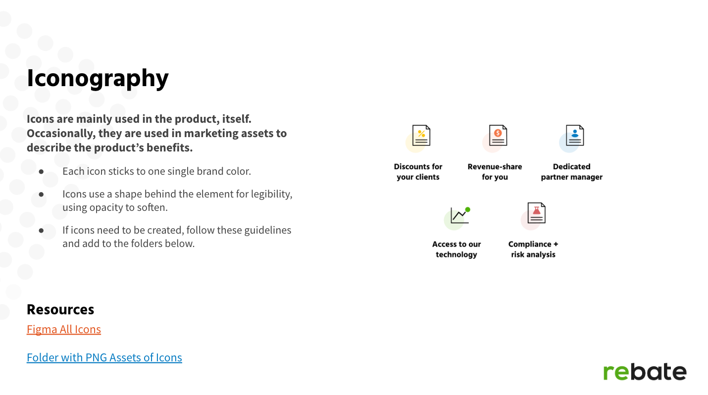 Rebates is a startup that needed help in repositioning their brand to hit the right target audience. This included a Brand Guide and Design System that would govern their collateral moving forward.
